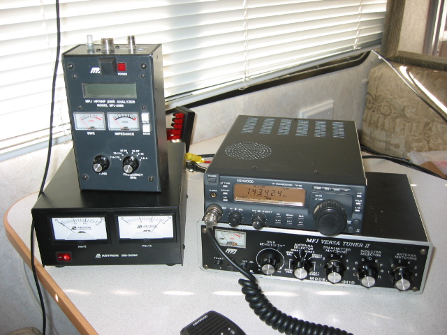 Finally, a picture of my station in the RV. The bandwidth of the loaded antennas isn't